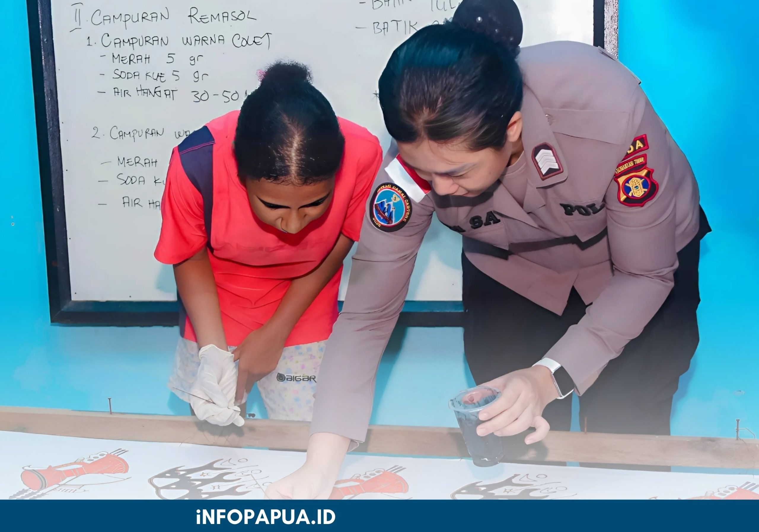 Pada Sabtu siang yang cerah, Brigpol Ita mengunjungi Sanggar Ameldi di Kota Jayapura, tempat para pengrajin batik Papua berkarya. Kedatangannya disambut hangat oleh Joni Silas Wona, seorang pembatik yang telah lama mengabdikan dirinya untuk seni ini. Dalam kesempatan tersebut, Brigpol Ita tak hanya menyaksikan proses pembuatan batik khas Papua, tetapi juga turut mencoba membatik sendiri. Dengan penuh ketelitian, ia menorehkan lilin panas di atas kain, mengikuti teknik yang diajarkan oleh para pengrajin.