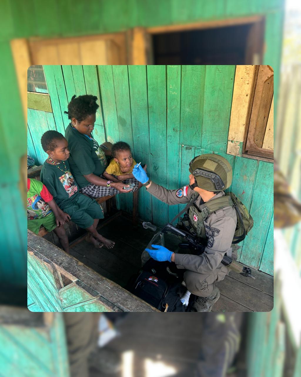 Dengan penuh kepedulian, personel Brimob memberikan perawatan luka kepada salah satu warga berinisial A.M. (33). Tindakan tersebut dilakukan sebagai bentuk tanggung jawab sosial sekaligus wujud empati terhadap kondisi masyarakat di daerah penugasan yang memiliki keterbatasan akses layanan kesehatan.