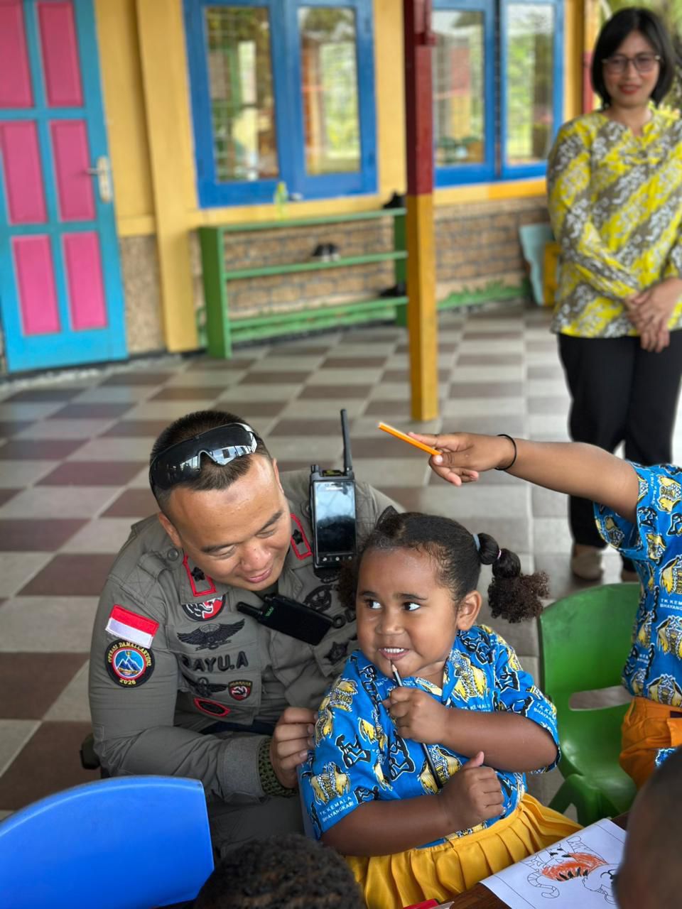 Dalam kegiatan tersebut, personel Operasi Damai Cartenz 2026 terlibat langsung mendampingi anak-anak dalam berbagai aktivitas edukatif, mulai dari belajar menggambar, latihan baris-berbaris (PBB), bermain bersama, hingga pemberian pengetahuan umum. Aktivitas ini dirancang untuk menanamkan nilai disiplin, kebersamaan, serta membentuk karakter positif anak sejak usia dini.
