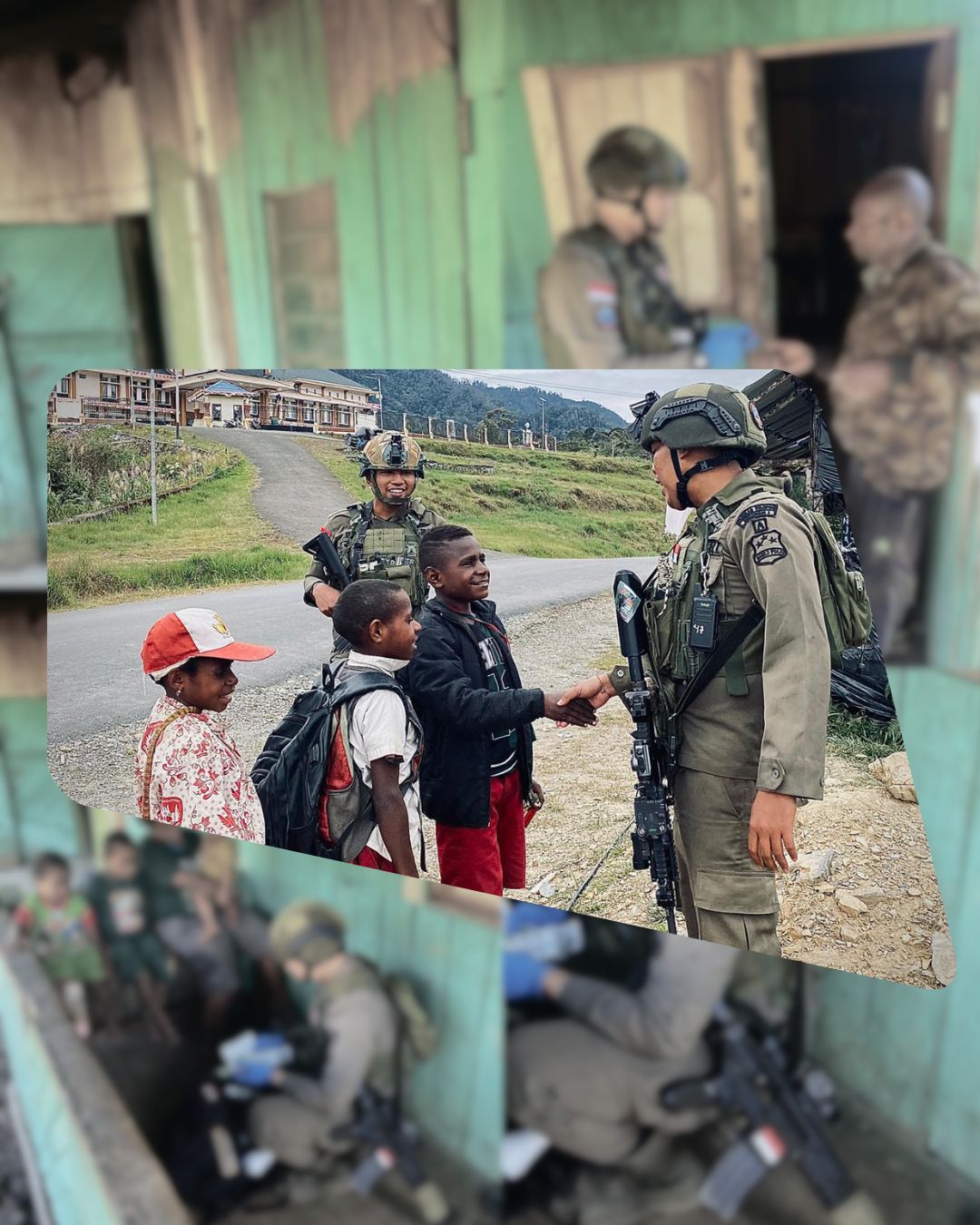 Personel Korps Brimob Polri yang tergabung dalam Satgas Tindak Operasi Damai Cartenz 2026 turun langsung ke tengah warga dengan membawa perlengkapan medis sederhana. Mereka melakukan pemeriksaan kesehatan, membagikan obat-obatan, serta memberikan edukasi kesehatan dasar kepada masyarakat. Anak-anak, orang tua, hingga lansia tampak antusias dan merasa nyaman menerima pelayanan yang diberikan secara ramah dan penuh empati.