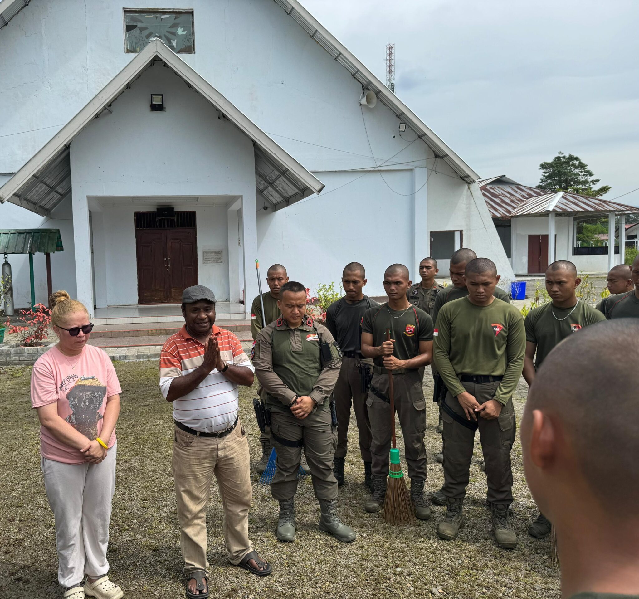 Selain menjalankan patroli dan penegakan hukum, personel Operasi Damai Cartenz 2026 meluangkan waktu untuk melakukan kerja bakti bersama di lingkungan gereja. Kegiatan tersebut juga dimanfaatkan sebagai sarana sosialisasi dan komunikasi dengan pengurus gereja serta jemaat, guna memperkuat sinergi antara aparat keamanan dan masyarakat.